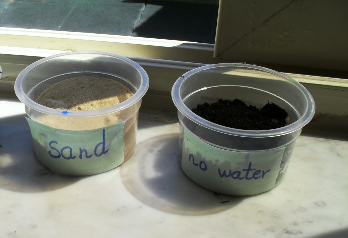 Planting beans: The children became aware of the planting process, watching each step by placing the dry beans in water a day before and then plant them the next day. They will eventually learn that watering the pot and keeping it in the sun will make the plant grow. Observing the changes and keeping track of its growth will foster knowledge about the world. They will observe and later discover whether the beans in 4 other pots will grow - one is in sand, one will not have water, one is in the fridge and the other is in the dark.