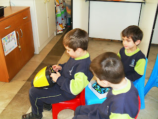 These two boys carried the sick 'elephant' on the stretcher.